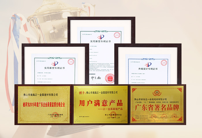 通過ISO9001認證,國家建筑材料測試中心和中國有色金屬華南產(chǎn)品質量監(jiān)督檢驗中心合格檢測,符合美國建筑制造商協(xié)會AAMA2605-98涂層標準,被國家建設部認定為建筑鋁合金外墻板、鋁合金天花板定點生產(chǎn)企業(yè)。