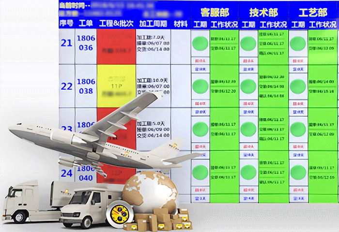 正一金屬科技為實現(xiàn)100%按期交付,自主開發(fā)交期監(jiān)管APP軟件,實時掌握訂單信息,智能遠程生產(chǎn)、物流進度及狀況監(jiān)控管理,結合成熟的物流管理體系,確保能在約定交期之前,完成產(chǎn)品交付。